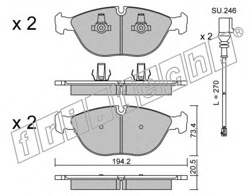 Сторона установки: Передний мост Тормозная система: Ate - Teves Ширина (мм): 194,2 Высота [мм]: 73,4 Толщина [мм]: 20,5 Датчик износа: Подготовлено для датчика износа колодок проверочное значение: ECE R90 APPROVED Колебания: С амортизатором колебаний
