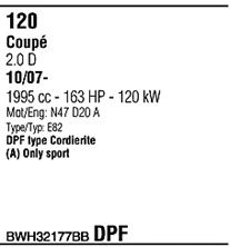 Для транспортных средств с дизельным фильтром тонкой очистки; начиная с г. вып. - 11/2007; код двигателя - N47; тип модели - E88
