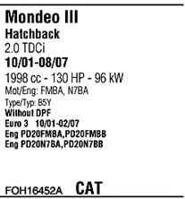 Раб. объем (округленный) - 2; тип модели - DCi TD; вар. оснащения - Hatchback Sedan; до года вып. - 02/2007; раб. объем (точн.) - 1998; код двигателя - FMBA; Исполнение днищевой планки - Kat; мощность - 96