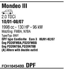 до года вып. - 09/2003; Выхлопная система - Euro 3; Для автомобилей с фильтром копоти