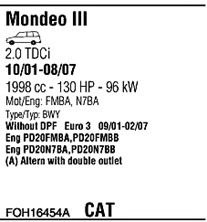 Раб. объем (округленный) - 2; тип модели - DCi TD; вар. оснащения - Stationwagon; до года вып. - 02/2007; раб. объем (точн.) - 1998; код двигателя - FMBA; Исполнение днищевой планки - Kat; мощность - 96