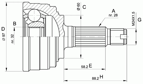 Тип соединения / сочленения: Шарнир равных угловых скоростей