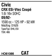код двигателя - D16Z6; тип модели - ESI
