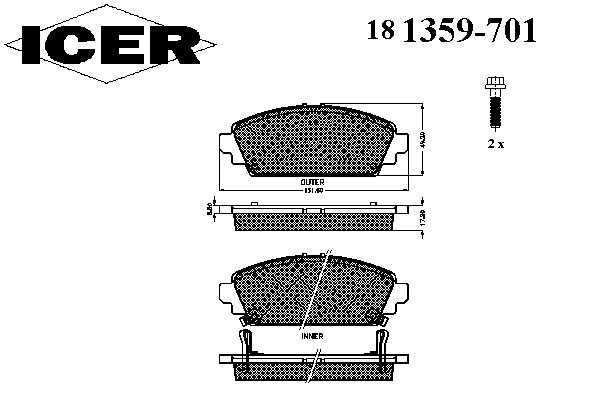 Сторона установки: Задний мост Ширина (мм): 88,8 Высота [мм]: 46,84 Толщина [мм]: 14,6 Датчик износа: С звуковым предупреждением износа Тормозная система: Akebono