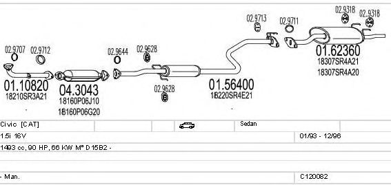 Раб. объем (округленный) - 1,5; тип модели - i 16V; вар. оснащения - Sedan; Число дверей - B; раб. объем (точн.) - 1493; код двигателя - D15B2; Исполнение днищевой планки - Kat; мощность - 66