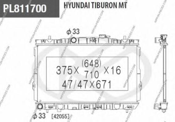 Размеры радиатора: 375 - 670 - 19