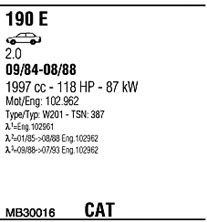 Раб. объем (округленный) - 2; тип модели - W201; Число дверей - B; до года вып. - 07/1985; раб. объем (точн.) - 1996; код двигателя - 102962; Исполнение днищевой планки - Kat; мощность - 87