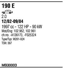 до года вып. - 09/1984; код двигателя - 102.962; тип модели - W201-024; до номера шасси - -F025324