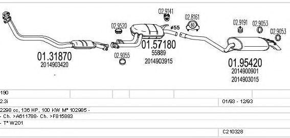 Раб. объем (округленный) - 2,3; тип модели - W201; Число дверей - C; начиная с г. вып. - 08/1991; до года вып. - 07/1993; раб. объем (точн.) - 2298; код двигателя - 102985; с № шасси - >F4528957; до номера шасси -