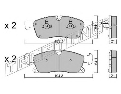 Сторона установки: Передний мост Ширина 1 [мм]: 193,1 Ширина 2 [мм]: 193 Высота 1 [мм]: 63,9 Высота 2 [мм]: 64 Толщина [мм]: 21,3 Датчик износа: Подготовлено для датчика износа колодок Тормозная система: Teves