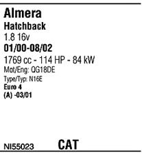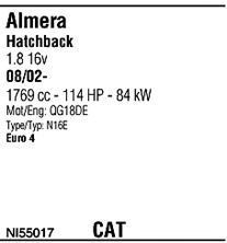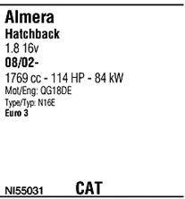 вар. оснащения - With Air PD (2 cats); код двигателя - QG18DE; Для автомобилей с катализатором; начиная с г. вып. - 08/2002; страна выпуска автомобиля - Великобритания