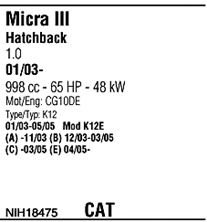 Раб. объем (округленный) - 1; тип модели - K12E; начиная с г. вып. - 11/2003; до года вып. - 02/2005; раб. объем (точн.) - 998; код двигателя - CG10DE; Исполнение днищевой планки - Kat; мощность - 48