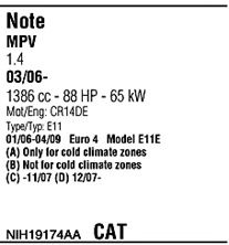 С регулируемым катализатором (3-х ступенчатый); начиная с г. вып. - 11/2007; до года вып. - 04/2009; код двигателя - CR14DE; тип модели - E11E