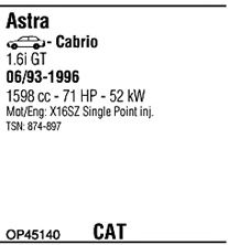 С регулируемым катализатором (3-х ступенчатый); начиная с г. вып. - 01/1996; код двигателя - X1.6SZR; с № шасси - TB033523