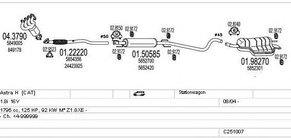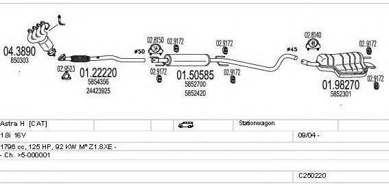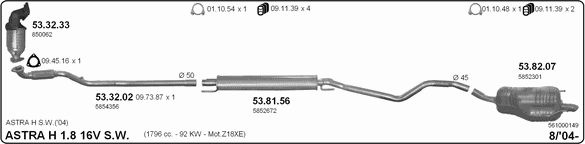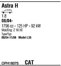 Раб. объем (округленный) - 1,8; тип модели - i 16V; вар. оснащения - Stationwagon; начиная с г. вып. - 09/2004; раб. объем (точн.) - 1796; код двигателя - Z1.8XE; с № шасси - >5-000001; Исполнение днищевой планки - Kat; мощность - 92