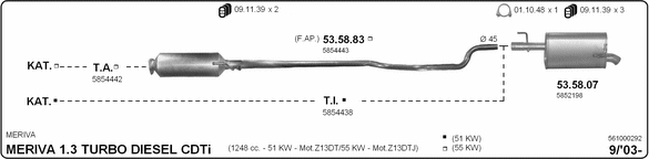 Раб. объем (округленный) - 1,3; тип модели - CDTi TD; вар. оснащения - Monospace; раб. объем (точн.) - 1248; код двигателя - Y1.3DT; Исполнение днищевой планки - Kat; мощность - 51