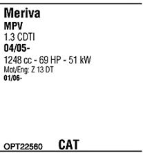 Раб. объем (округленный) - 1,3; тип модели - CDTi TD; вар. оснащения - Monospace; Число дверей - A; раб. объем (точн.) - 1248; код двигателя - Z1.3DT; Исполнение днищевой планки - Kat; мощность - 51