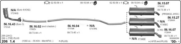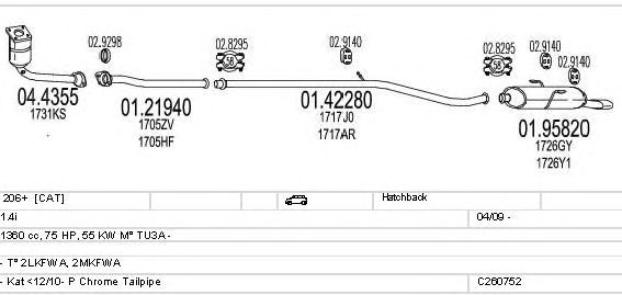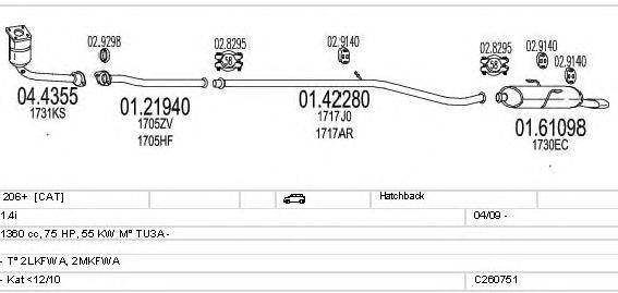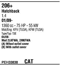 Раб. объем (округленный) - 1,4; тип модели - 2MKFWA; вар. оснащения - Hatchback; Число дверей - b; начиная с г. вып. - 04/2009; раб. объем (точн.) - 1360; код двигателя - TU3A; Исполнение днищевой планки - Kat; мощность - 55