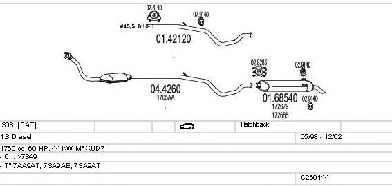 Раб. объем (округленный) - 1,8; тип модели - 7SA9AT; вар. оснащения - Hatchback; начиная с г. вып. - 05/1998; раб. объем (точн.) - 1769; код двигателя - XUD7; с № шасси - >7849; Исполнение днищевой планки - Kat; мощность - 44