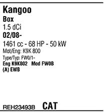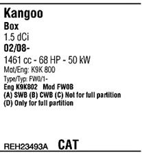 Раб. объем (округленный) - 1,5; тип модели - FWIA; вар. оснащения - Van; Число дверей - b; до года вып. - 05/2009; раб. объем (точн.) - 1461; код двигателя - K9K802; Исполнение днищевой планки - Kat; мощность - 51
