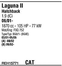 Раб. объем (округленный) - 1,9; тип модели - KGOR; вар. оснащения - Hatchback Stationwag; до года вып. - 09/2002; раб. объем (точн.) - 1870; код двигателя - F9Q650; до номера шасси - <263.900; Исполнение днищевой планки - Kat; мощность - 74