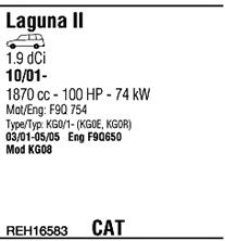 Раб. объем (округленный) - 1,9; тип модели - KGOR; вар. оснащения - Hatchback Stationwag; до года вып. - 09/2002; раб. объем (точн.) - 1870; код двигателя - F9Q650; до номера шасси - <263.900; Исполнение днищевой планки - Kat; мощность - 74