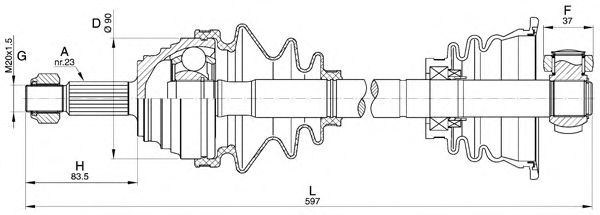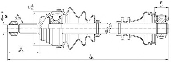 Внешнее зубчатое соединение со стороны колеса: 23