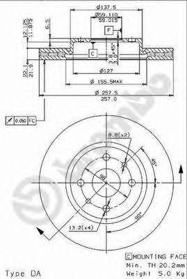 Толщина тормозного диска (мм): 22,0