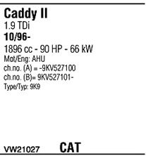 Раб. объем (округленный) - 1,9; тип модели - TDi TD; вар. оснащения - Van; до года вып. - 04/1997; раб. объем (точн.) - 1896; код двигателя - 1Z; с № шасси - >9K-V-500001; до номера шасси - <9K-V-527100; Исполнение днищевой планки - Kat; мощность - 66