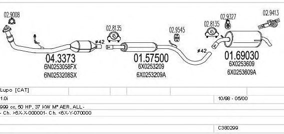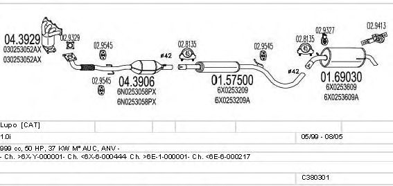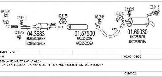 Раб. объем (округленный) - 1; тип модели - i; Число дверей - B; начиная с г. вып. - 05/2000; раб. объем (точн.) - 999; код двигателя - ALD; с № шасси - >6E-1-000001; до номера шасси - <6E-6-000217; Исполнение днищевой планки - Kat; мощность - 37
