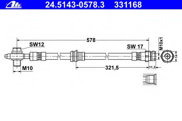 Сторона установки: Передний мост Длина [мм]: 578 Внутренняя резьба [мм]: M10x1 Дополнительный артикул / Доп. информация 2: С полым болтом Внешняя резьба [мм]: M10 Ширина зева гаечного ключа: 12