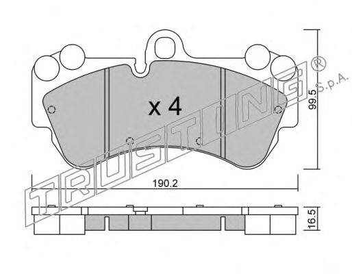 Сторона установки: Передний мост Тормозная система: Brembo Ширина (мм): 190,2 Высота [мм]: 99,5 Толщина [мм]: 16,5 Датчик износа: Вкл. датчик износа проверочное значение: ECE R90 APPROVED Колебания: С амортизатором колебаний